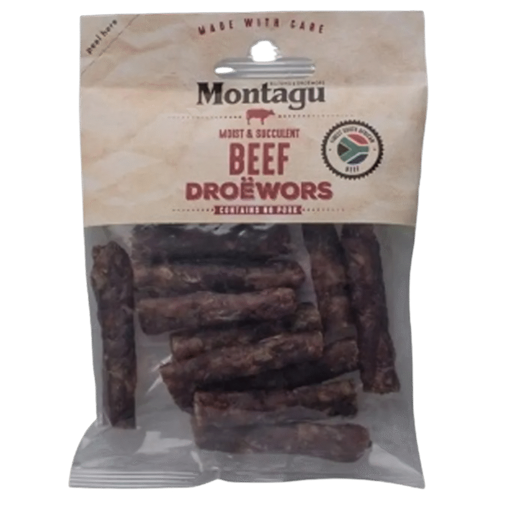 Le droewors, quant à lui, est une saucisse séchée à l’air. La viande est préalablement séchée dans un mélange de vinaigre, de sel, de sucre et d’épices, telles que la coriandre et le poivre, puis suspendue pour achever le processus de séchage.