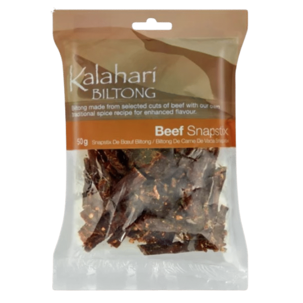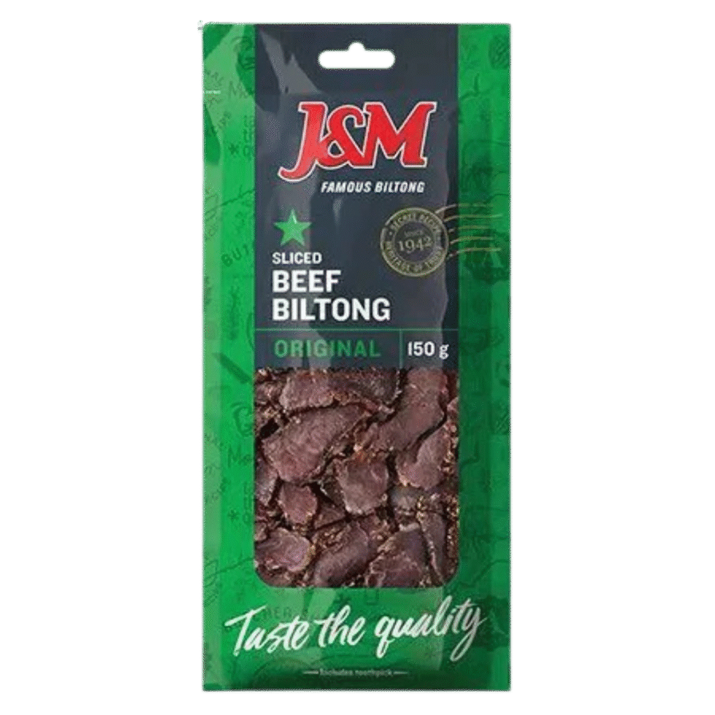Le biltong est une viande séchée à l’air, coupée en fines tranches, principalement à base de bœuf, mais aussi de gibier comme l’antilope sauteuse, le sanglier et l’autruche.